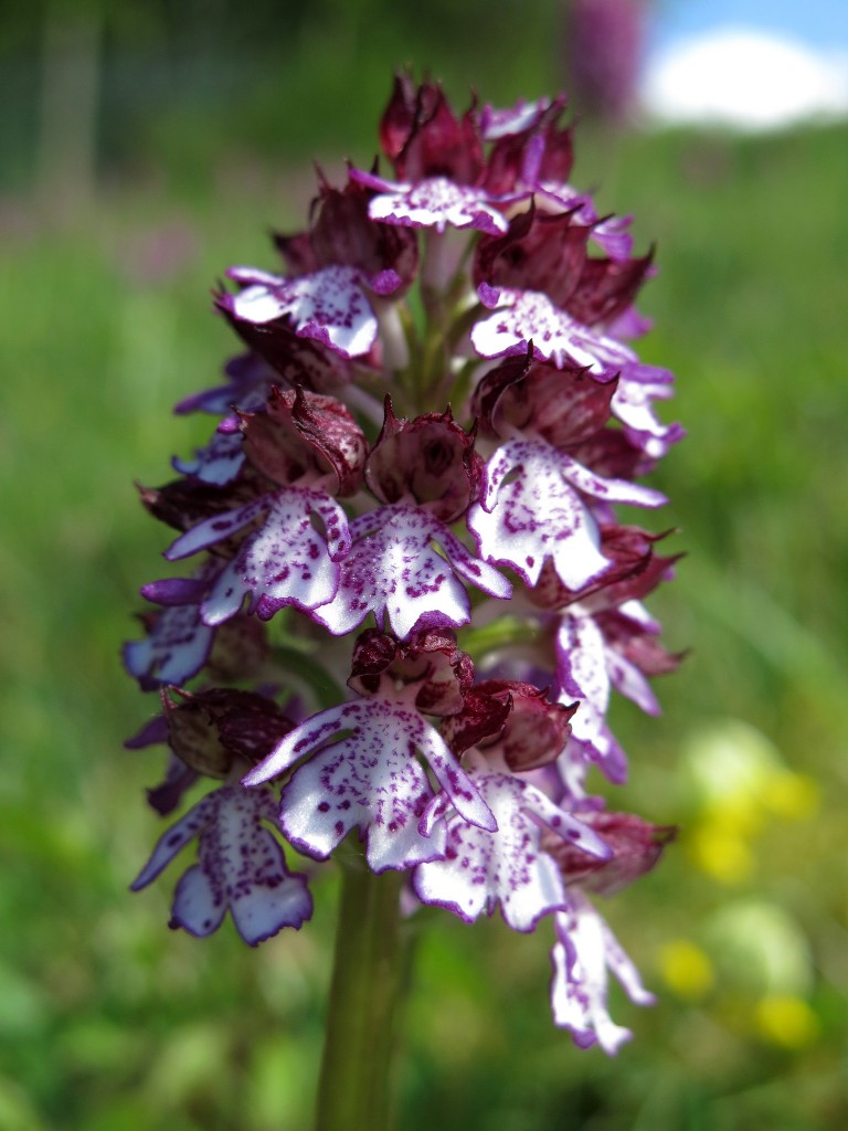 Flower hood | pale and relatively unmarked | coloured with dense spotting |