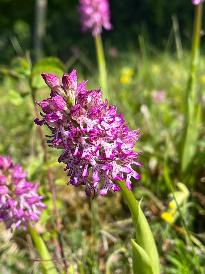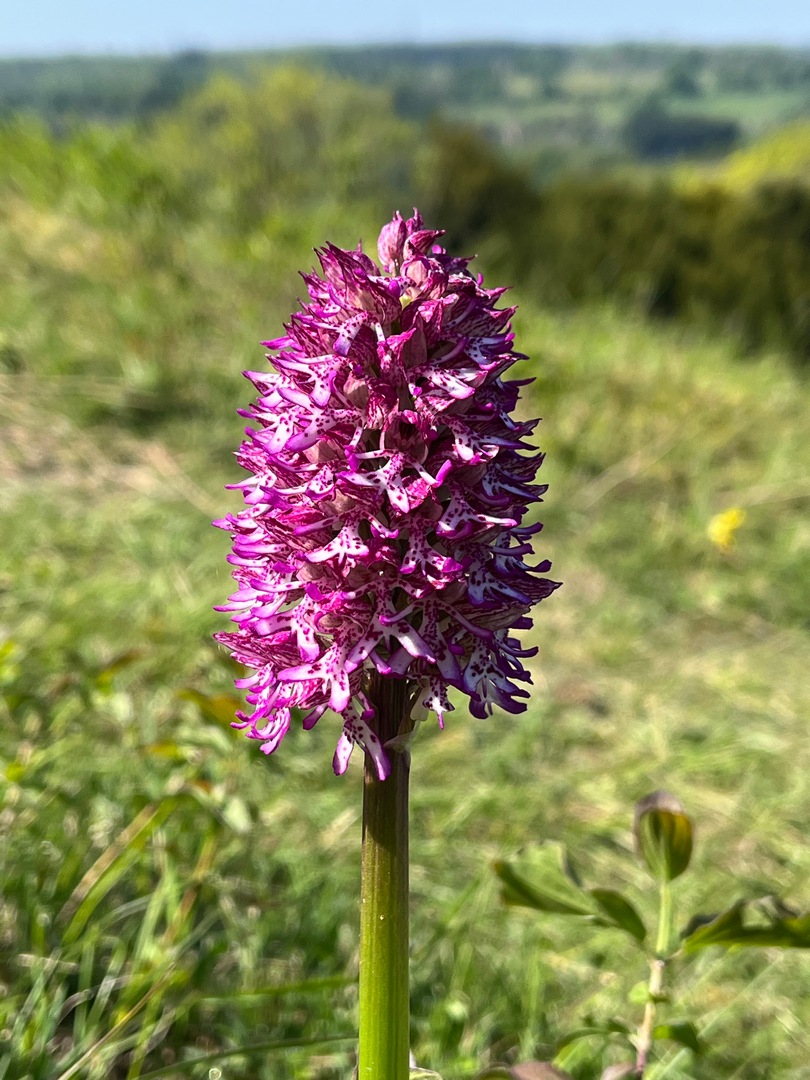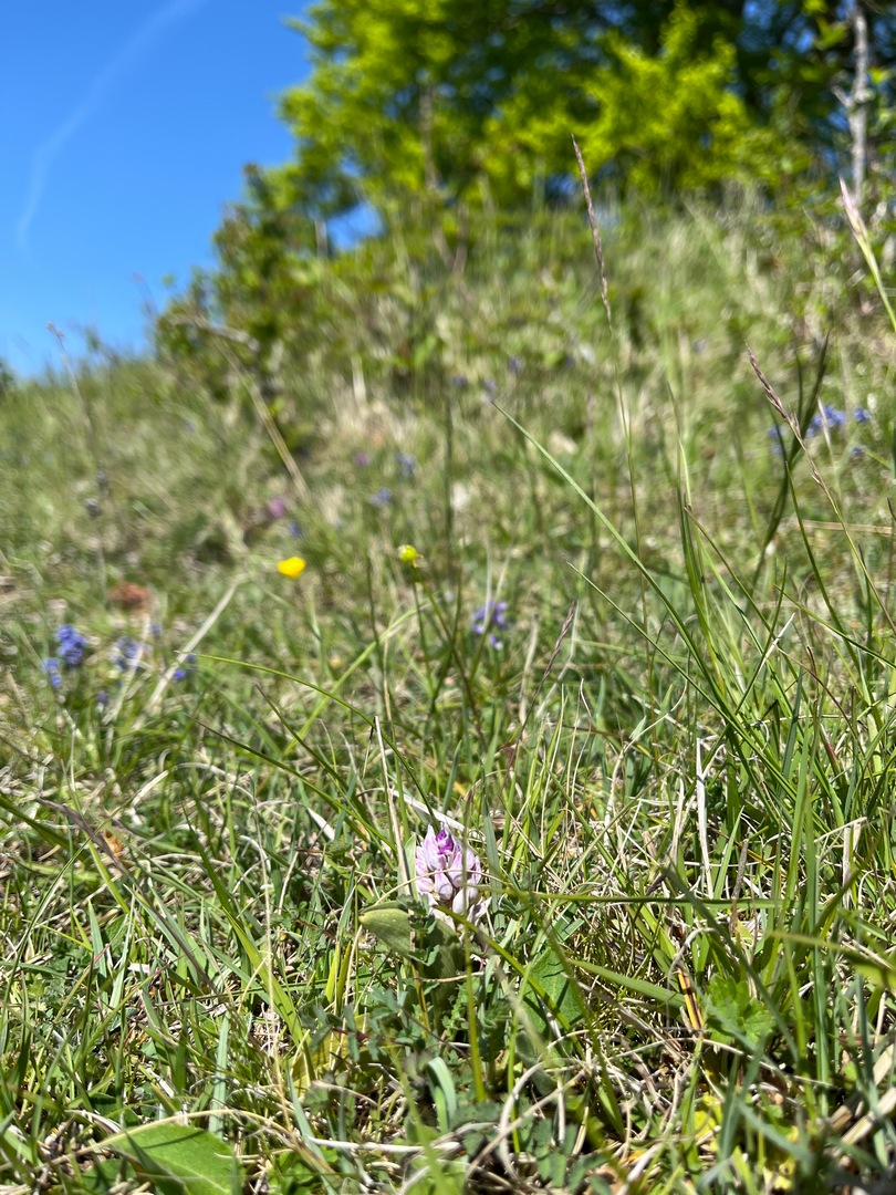 Later, on the 30th April I went up after a tip-off on the “Wild Orchids of the UK” Facebook group saying that the orchids were in flower but that they hadn’t seen Lady Orchid or Monkey Orchid. Their visit had been a few days prior to mine by I was pleasantly surprised to see 2x Lady Orchids (though smaller than in previous years) and a single Monkey Orchid in full flower. Other Monkeys were in bud around the site, including a really nice chunky head of buds just below the lone beech tree, just into slope 4.
